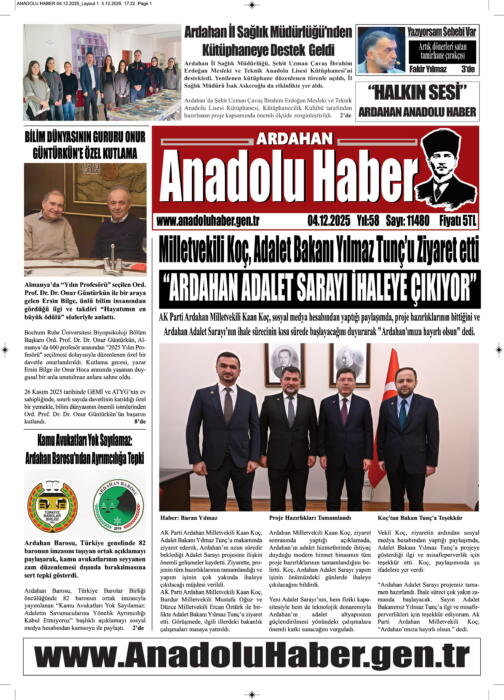 ARDAHAN’I HER GÜN YAZAN ANADOLU E-HABER GAZETESİ 4 ARALIK 2025