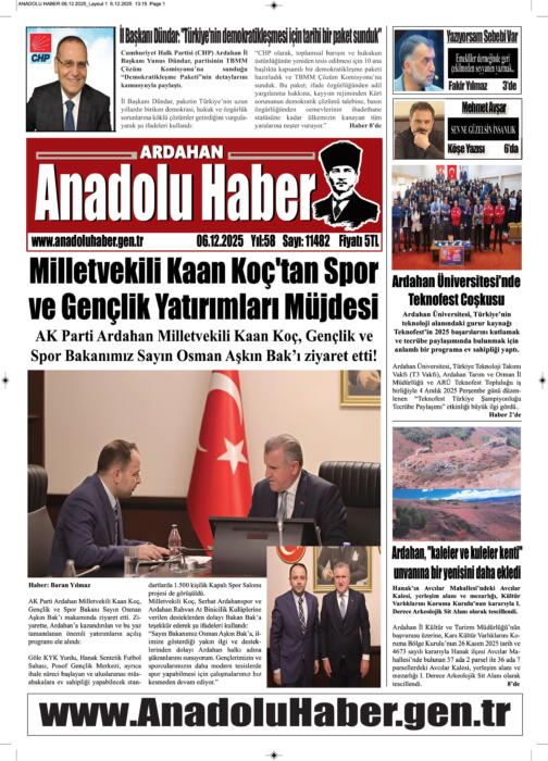 ARDAHAN’I HER GÜN YAZAN ANADOLU E-HABER GAZETESİ 6 ARALIK 2025