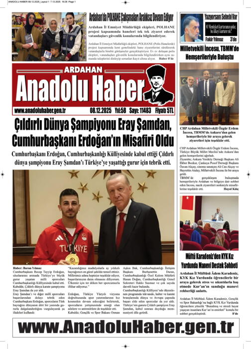 ARDAHAN’I HER GÜN YAZAN ANADOLU E-HABER GAZETESİ 8 ARALIK 2025