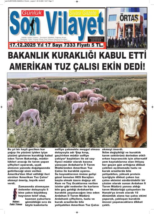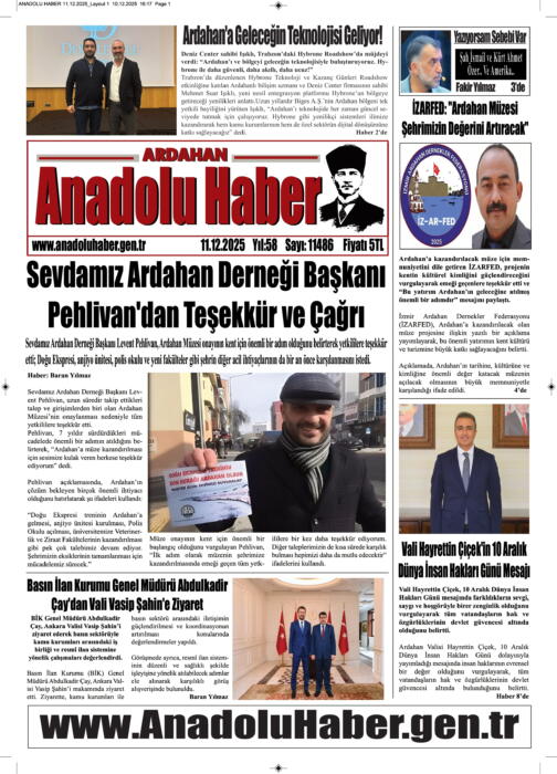 ARDAHAN’I HER GÜN YAZAN ANADOLU E-HABER GAZETESİ 11 ARALIK 2025