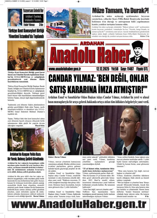 ARDAHAN’I HER GÜN YAZAN ANADOLU E-HABER GAZETESİ 13 ARALIK 2025