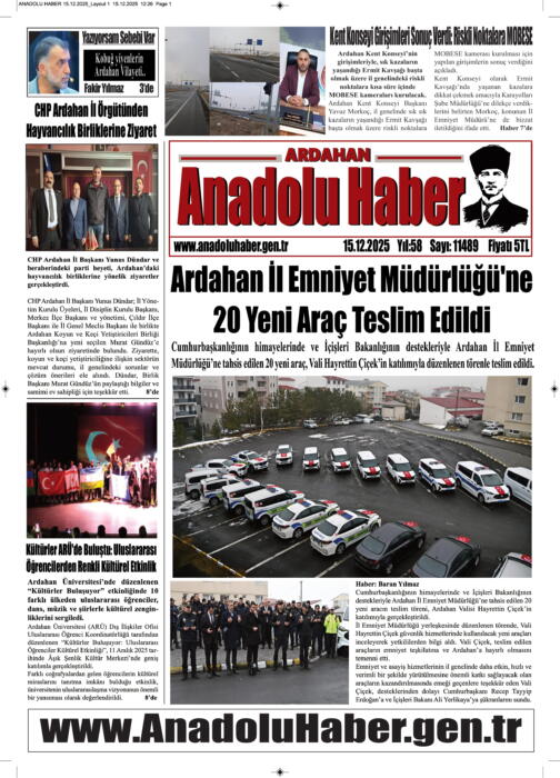 ARDAHAN’I HER GÜN YAZAN ANADOLU E-HABER GAZETESİ 15 ARALIK 2025