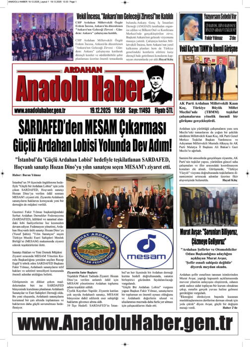 ARDAHAN’I HER GÜN YAZAN ANADOLU E-HABER GAZETESİ 20 ARALIK 2025