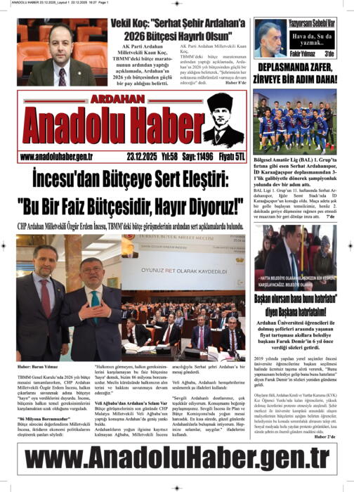 ARDAHAN’I HER GÜN YAZAN ANADOLU E-HABER GAZETESİ 23 ARALIK 2025