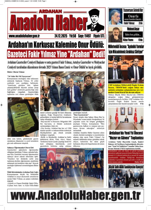 ARDAHAN’I HER GÜN YAZAN ANADOLU E-HABER GAZETESİ 24 ARALIK 2025