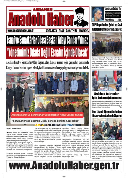 ARDAHAN’I HER GÜN YAZAN ANADOLU E-HABER GAZETESİ 17 ARALIK 2025