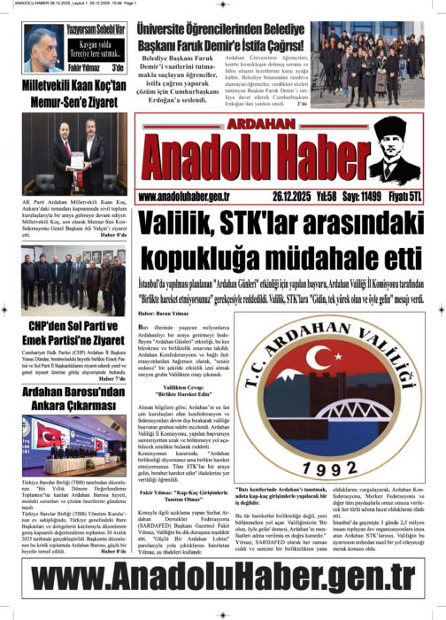 ARDAHAN’I HER GÜN YAZAN ANADOLU E-HABER GAZETESİ 26 KASIM 2025