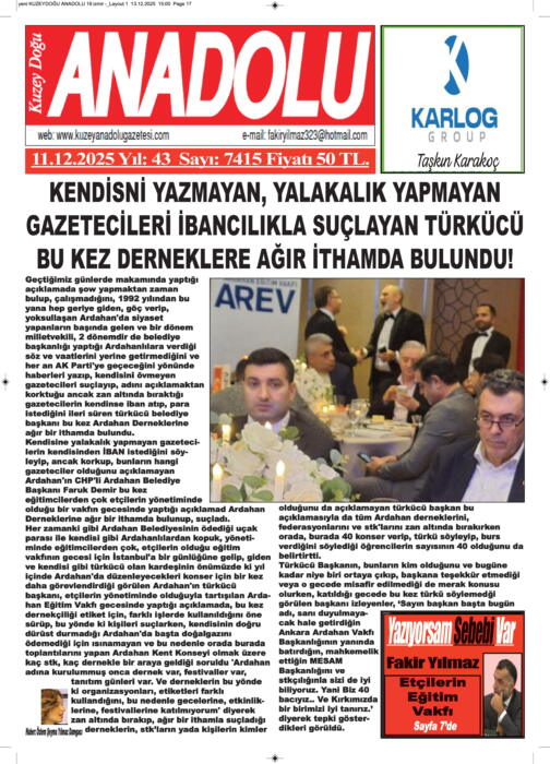 ARDAHAN’I HER GÜN YAZAN ANADOLU E-HABER GAZETESİ 17 KASIM 2025