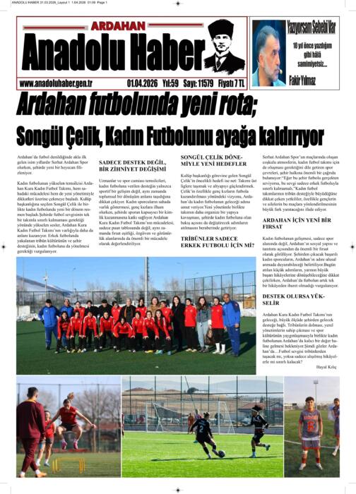 ARDAHAN’I HER GÜN YAZAN ANADOLU E-HABER GAZETESİ 01 NİSAN 2026