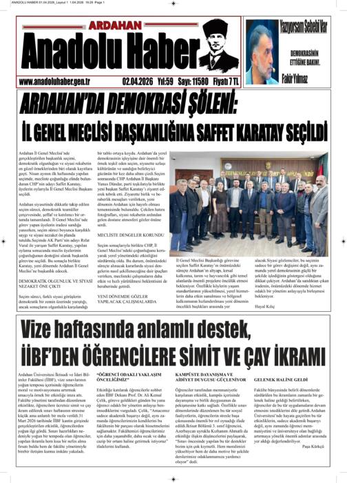 ARDAHAN’I HER GÜN YAZAN ANADOLU E-HABER GAZETESİ 02 NİSAN 2026