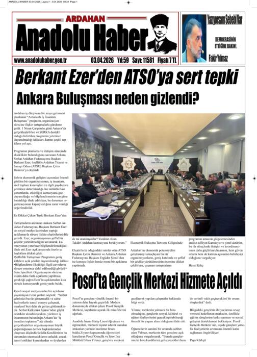ARDAHAN’I HER GÜN YAZAN ANADOLU E-HABER GAZETESİ 04 MART 2026