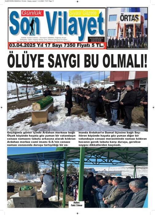ARDAHAN’I HER GÜN YAZAN ANADOLU E-HABER GAZETESİ 31 MART 2026