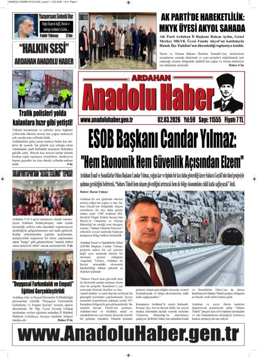 ARDAHAN’I HER GÜN YAZAN ANADOLU E-HABER GAZETESİ 02 MART 2026
