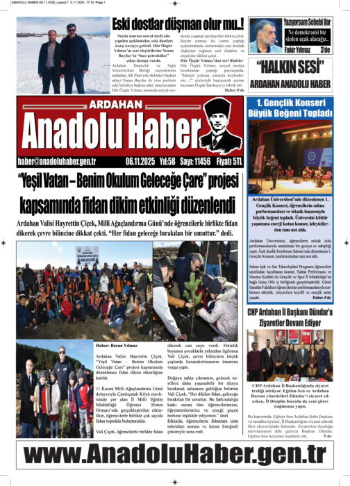ARDAHAN’I HER GÜN YAZAN ANADOLU E-HABER GAZETESİ 11 KASIM 2025