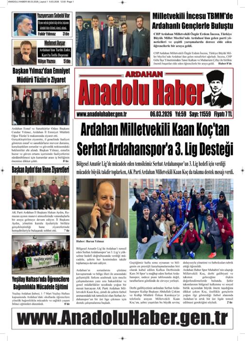 ARDAHAN’I HER GÜN YAZAN ANADOLU E-HABER GAZETESİ 06 MART 2026
