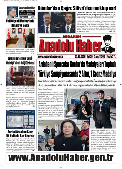 ARDAHAN’I HER GÜN YAZAN ANADOLU E-HABER GAZETESİ 07 MART 2026