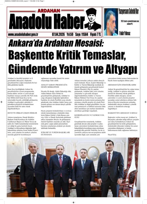 ARDAHAN’I HER GÜN YAZAN ANADOLU E-HABER GAZETESİ 07 NİSAN 2026