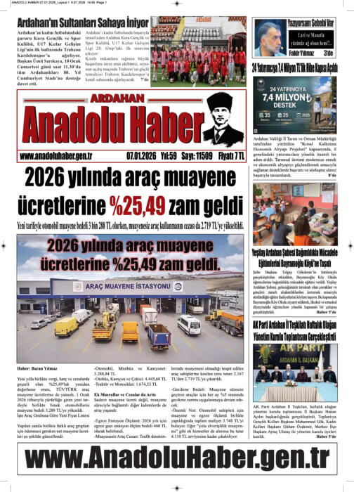 ARDAHAN’I HER GÜN YAZAN ANADOLU E-HABER GAZETESİ 07 OCAK 2026