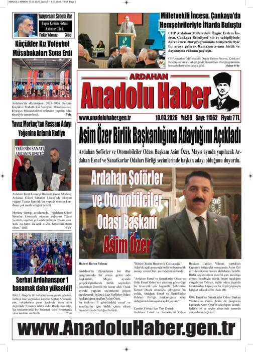 ARDAHAN’I HER GÜN YAZAN ANADOLU E-HABER GAZETESİ 10 MART 2026