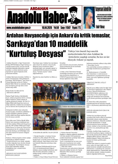 ARDAHAN’I HER GÜN YAZAN ANADOLU E-HABER GAZETESİ 10 NİSAN 2026