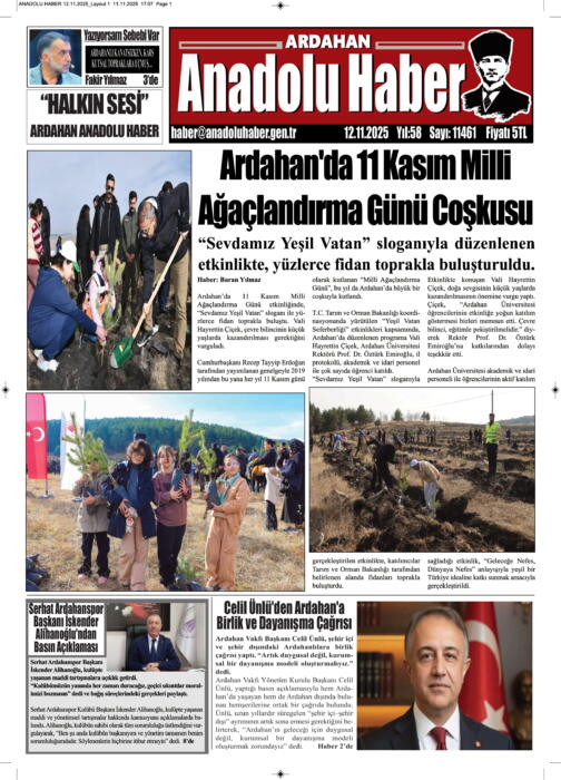 ARDAHAN’I HER GÜN YAZAN ANADOLU E-HABER GAZETESİ 12 KASIM 2025