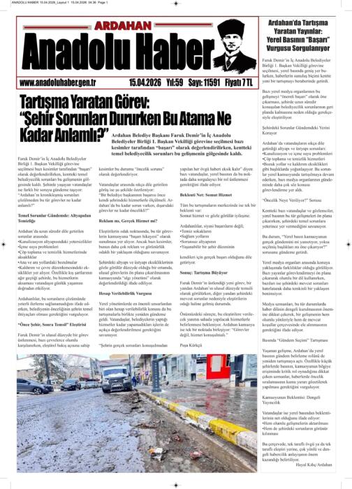 ARDAHAN’I HER GÜN YAZAN ANADOLU E-HABER GAZETESİ 15 NİSAN 2026