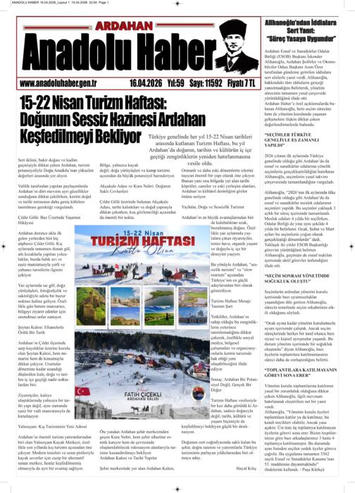 ARDAHAN’I HER GÜN YAZAN ANADOLU E-HABER GAZETESİ 16 NİSAN 2026
