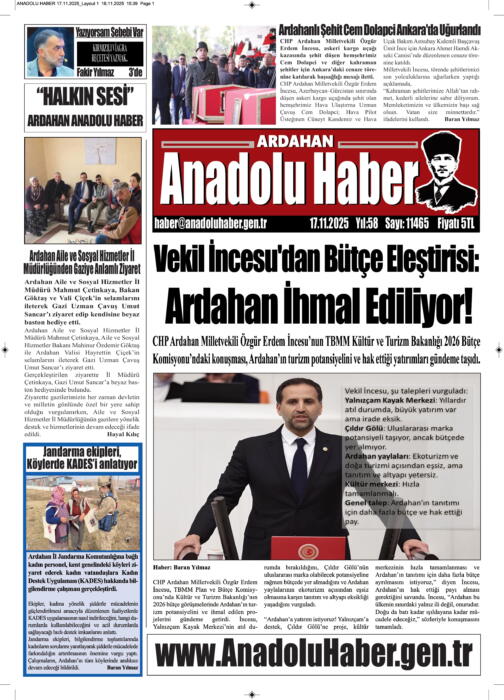 ARDAHAN’I HER GÜN YAZAN ANADOLU E-HABER GAZETESİ 17 KASIM 2025