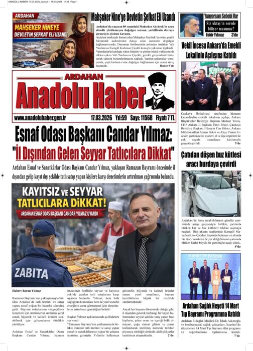 ARDAHAN’I HER GÜN YAZAN ANADOLU E-HABER GAZETESİ 17 MART 2026