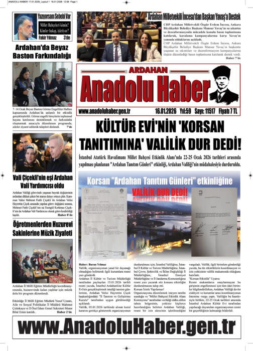 ARDAHAN’I HER GÜN YAZAN ANADOLU E-HABER GAZETESİ 17 OCAK 2026