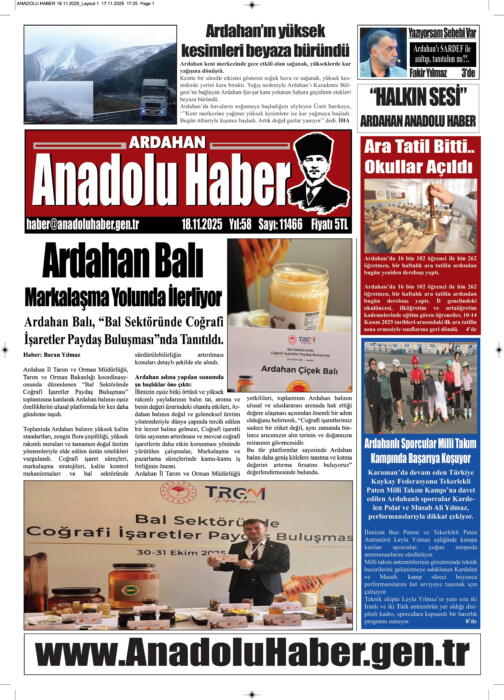 ARDAHAN’I HER GÜN YAZAN ANADOLU E-HABER GAZETESİ 18 KASIM 2025