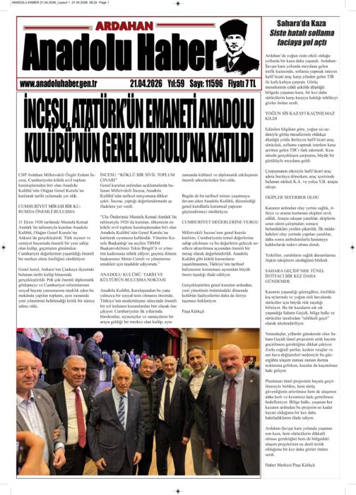 ARDAHAN’I HER GÜN YAZAN ANADOLU E-HABER GAZETESİ 21 NİSAN 2026