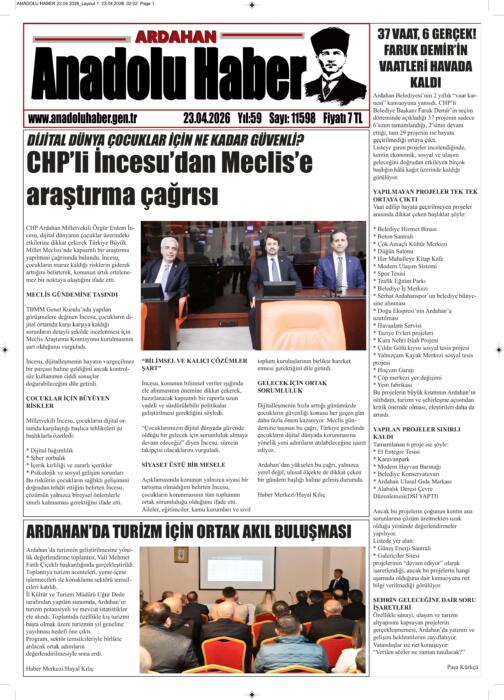 ARDAHAN’I HER GÜN YAZAN ANADOLU E-HABER GAZETESİ 23 NİSAN 2026