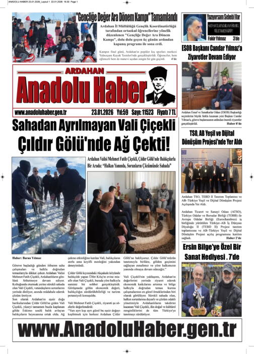 ARDAHAN’I HER GÜN YAZAN ANADOLU E-HABER GAZETESİ 22 OCAK 2026