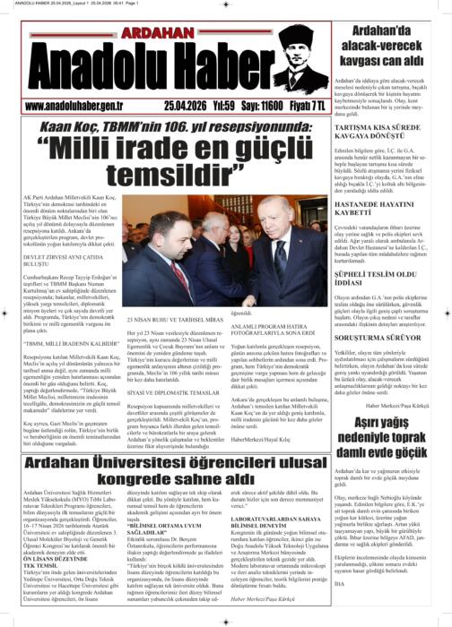 ARDAHAN’I HER GÜN YAZAN ANADOLU E-HABER GAZETESİ 25 NİSAN 2026