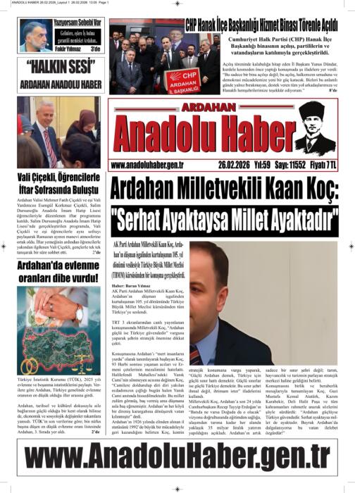 ARDAHAN’I HER GÜN YAZAN ANADOLU E-HABER GAZETESİ 26 ŞUBAT 2026