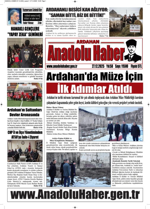 ARDAHAN’I HER GÜN YAZAN ANADOLU E-HABER GAZETESİ 27 ARALIK 2025