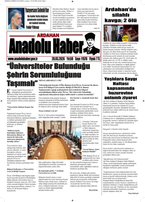 ARDAHAN’I HER GÜN YAZAN ANADOLU E-HABER GAZETESİ 27 MART 2026