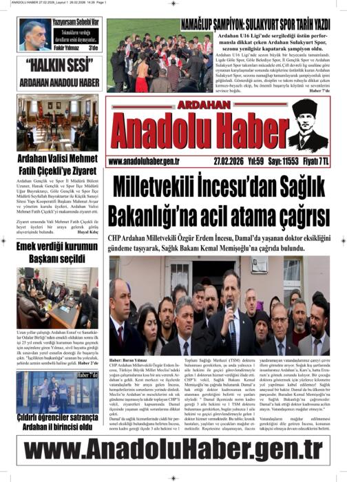 ARDAHAN’I HER GÜN YAZAN ANADOLU E-HABER GAZETESİ 26 ŞUBAT 2026