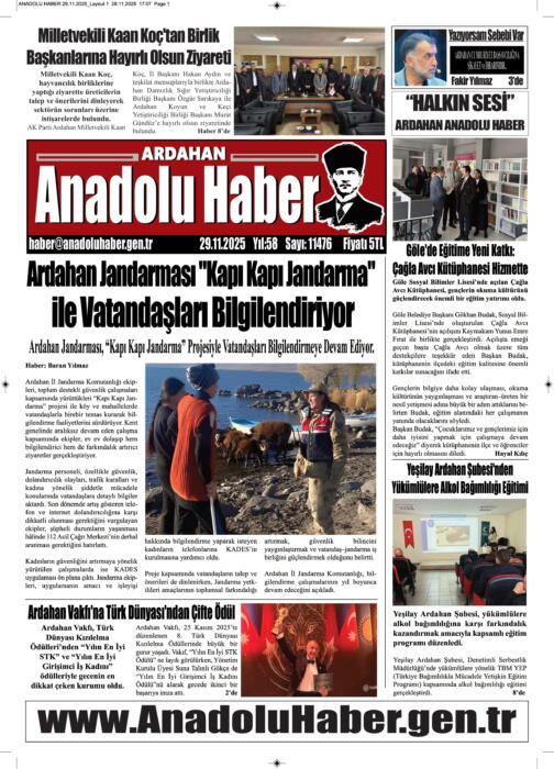 ARDAHAN’I HER GÜN YAZAN ANADOLU E-HABER GAZETESİ 29 KASIM 2025