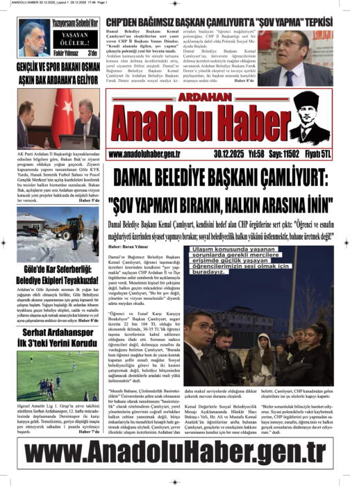 ARDAHAN’I HER GÜN YAZAN ANADOLU E-HABER GAZETESİ 30 ARALIK 2025