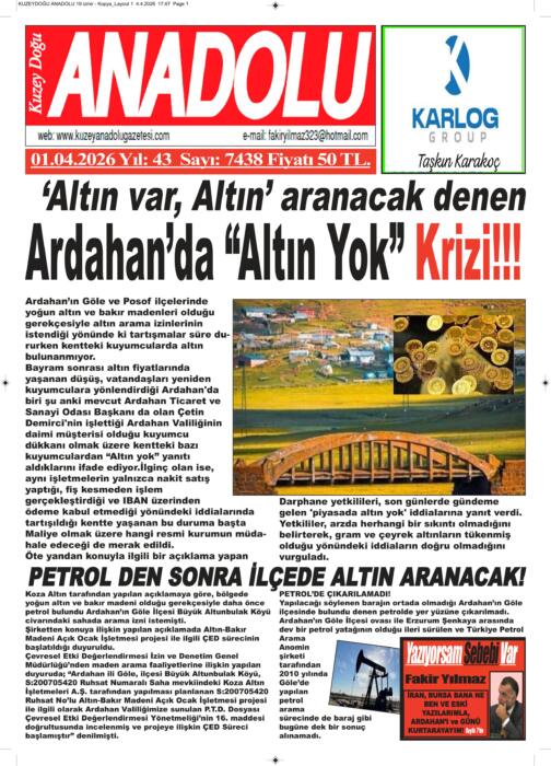 ARDAHAN’I HER GÜN YAZAN ANADOLU E-HABER GAZETESİ 13 NİSAN 2026