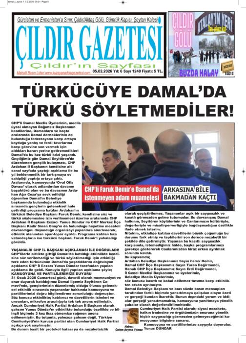ARDAHAN’I HER GÜN YAZAN ANADOLU E-HABER GAZETESİ 05 ŞUBAT 2026