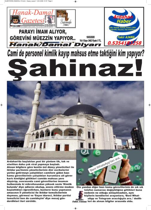 ARDAHAN’I HER GÜN YAZAN ANADOLU E-HABER GAZETESİ 16 MART 2026