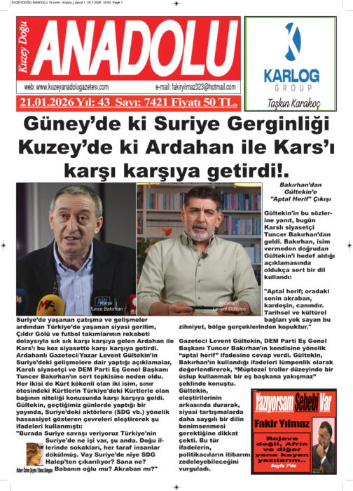 ARDAHAN’I HER GÜN YAZAN ANADOLU E-HABER GAZETESİ 27 OCAK 2026