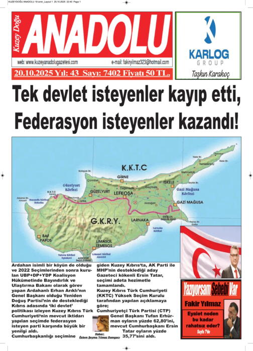 ARDAHAN’I HER GÜN YAZAN ANADOLU E-HABER GAZETESİ 25 EKİM 2025