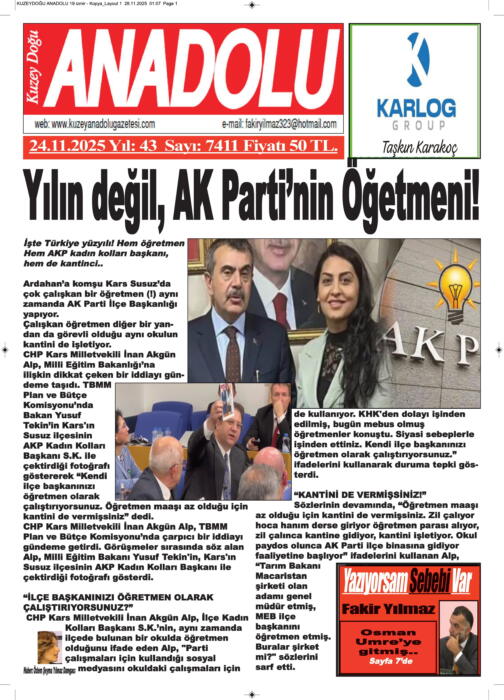 ARDAHAN’I HER GÜN YAZAN ANADOLU E-HABER GAZETESİ 26 KASIM 2025