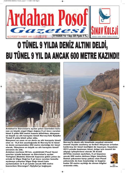 ARDAHAN’I HER GÜN YAZAN ANADOLU E-HABER GAZETESİ 31 EKİM 2025