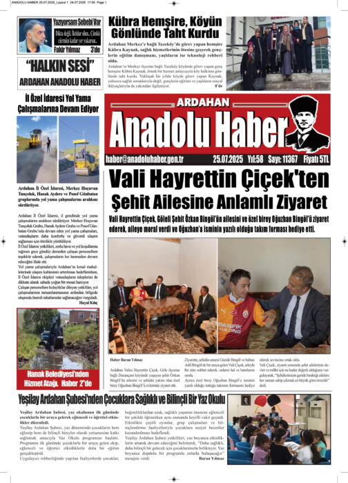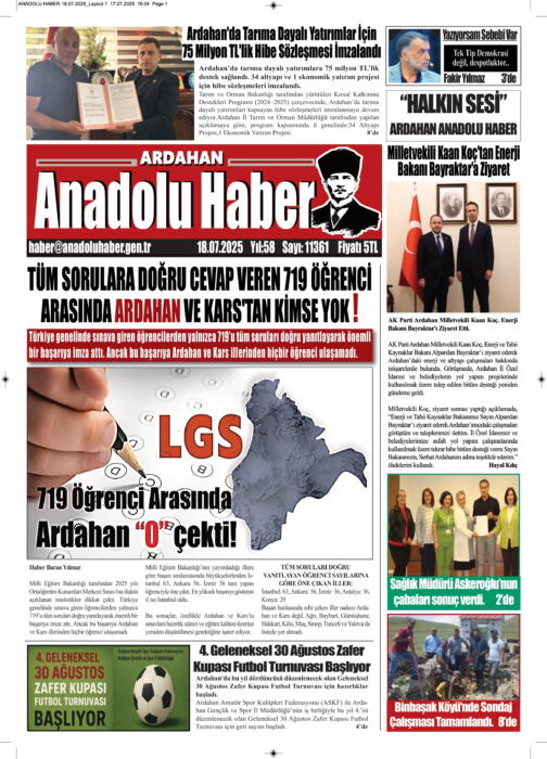 ARDAHAN’I HER GÜN YAZAN ANADOLU E-HABER GAZETESİ 18 TEMMUZ 2025