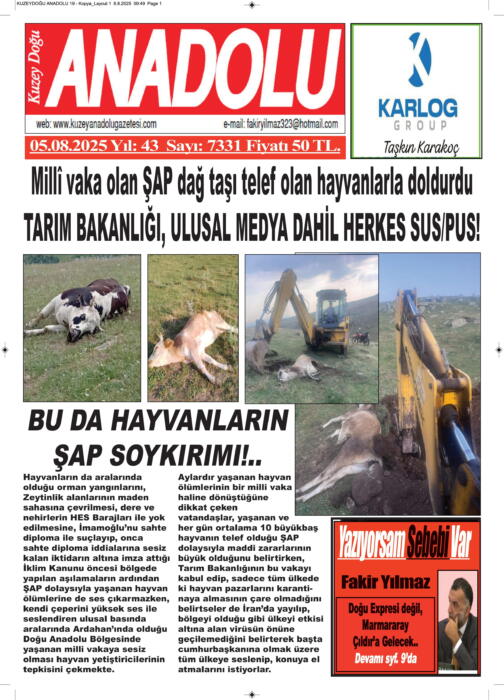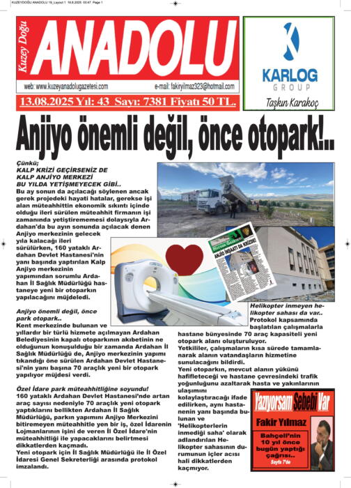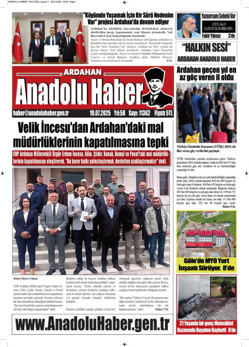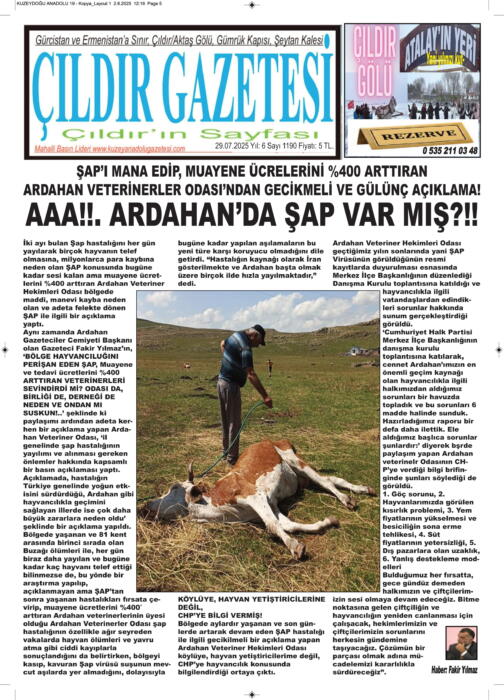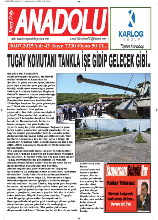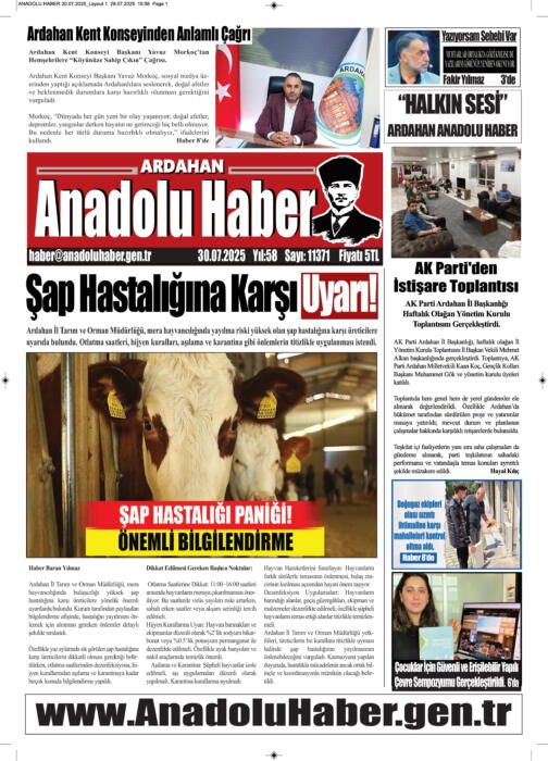 ARDAHAN’I HER GÜN YAZAN ANADOLU E-HABER GAZETESİ 19 TEMMUZ 2025